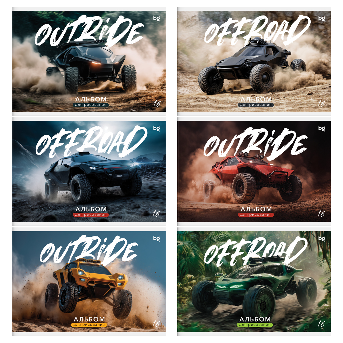 Альбом для рисования «Джипы» от бренда bg — удобный и практичный выбор для творчества. Изделие компактного формата А5 легко поместится в папку или рюкзак. Альбом можно разместить на небольшом столе. Внутренний блок состоит из 16 листов офсетной бумаги плотностью 100 г/м². Скрепка надежно удерживает листы от выпадения. Обложка выполнена из высококачественного мелованного картона. Для рисования можно использовать восковые мелки, цветные и черно-графитные карандаши, гелевые ручки и краски. На обложке изображены яркие машины.