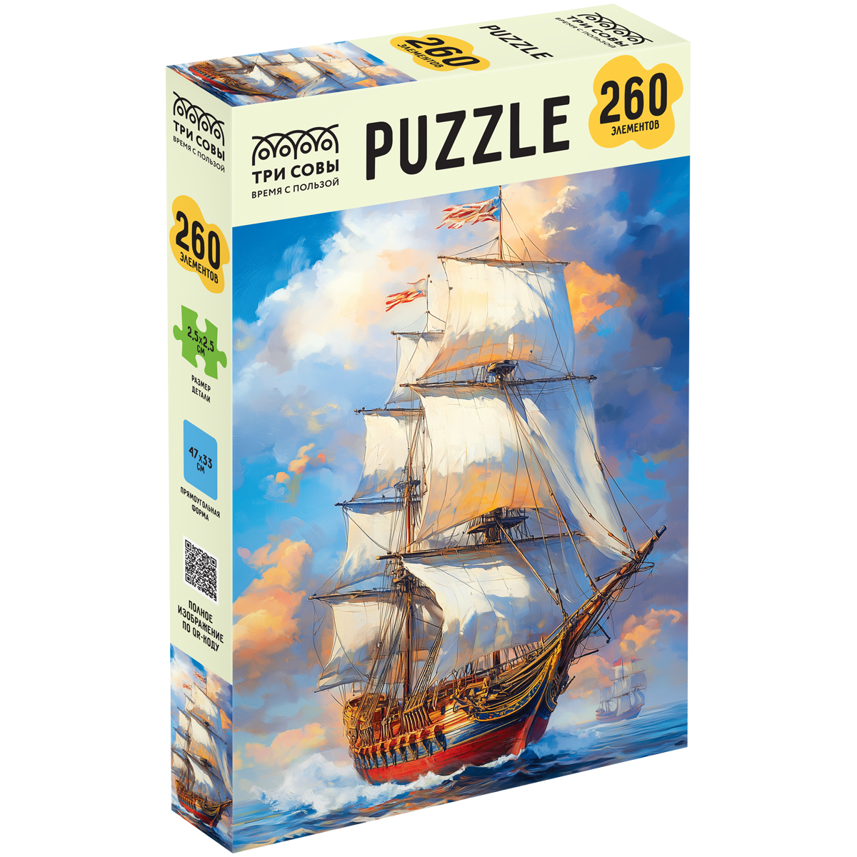 Пазл «ТРИ СОВЫ» «Парусник» из 260 элементов станет отличным способом весело провести вечер. Картинка имеет вертикальную ориентацию, в собранном виде размер составляет 47*33 см.