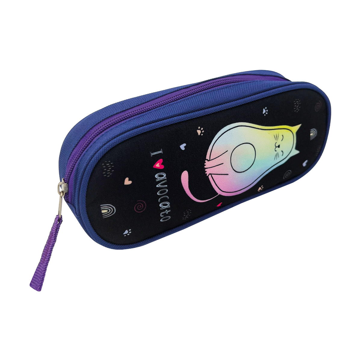 Пенал-футляр для девочки ArtSpace AvoCato – отличный помощник в учёбе. Изделие размера 210*80*45 мм имеет одно отделение, закрывающееся на молнию. Модель выполнена из полиэстера чёрного цвета с ярким рисунком. Удобный школьный пенал для хранения письменных и чертежных принадлежностей непременно понравится девочкам. Упакован в индивидуальный пакет. Поставляется без наполнения.